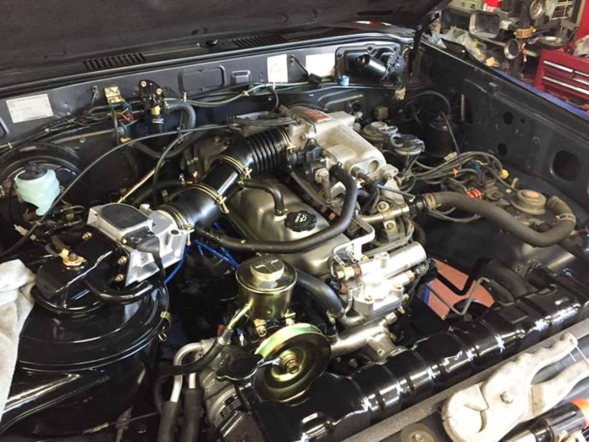 So far, we have a new water pump, thermostat, radiator hoses and belts. Additionally, the power steering pump, radiator and air-con pump have been stripped and rebuilt.