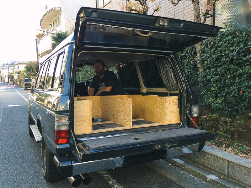 After spending many hours researching on various forums (expeditionportal, ih8mud, hubb) and even more time mulling things over in my head, an image slowly coalesced of how the interior was going to be transformed. First I would remove the rear seats; next I would build a raised platform on which we’d sleep and that contained storage underneath in the form of 2 large drawers plus various cubby holes. Not exactly a groundbreaking concept, but fairly ambitious given our resources – no tools and only a small apartment to work in!