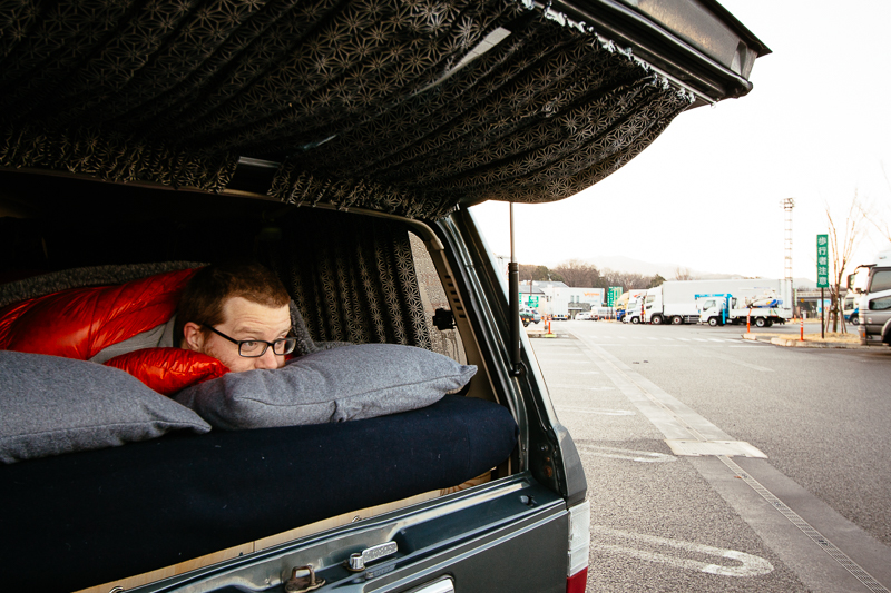 We woke up to very heavy persistent rain which we were expecting. So we decided we might as well drive for most of the day towards Tokyo and then find a spot maybe near Shimoda on the coast. The rain was relentless as we stuck to the Expressways towards Tokyo. I then made a rather dull decision that actually we might as well come home; without our awning and attached room we’re pretty much stuck in the car. We also hadn’t stocked up on booze for another service station night! So 7 hours and 14,000 yens-worth of toll fees later we arrived home. A few beers later and a trip over the road for pizza we were back with the electric blanket and home comforts.