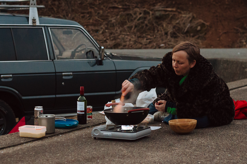 As dusk approached, we found a small fishing labour and parked up. We drank beer and wine on the beach and watched the sun go down. As darkness grew closer we made a ‘proper’ meal of cous cous and a veg stew. Yum – the cheap Japanese gas stove proving excellent!