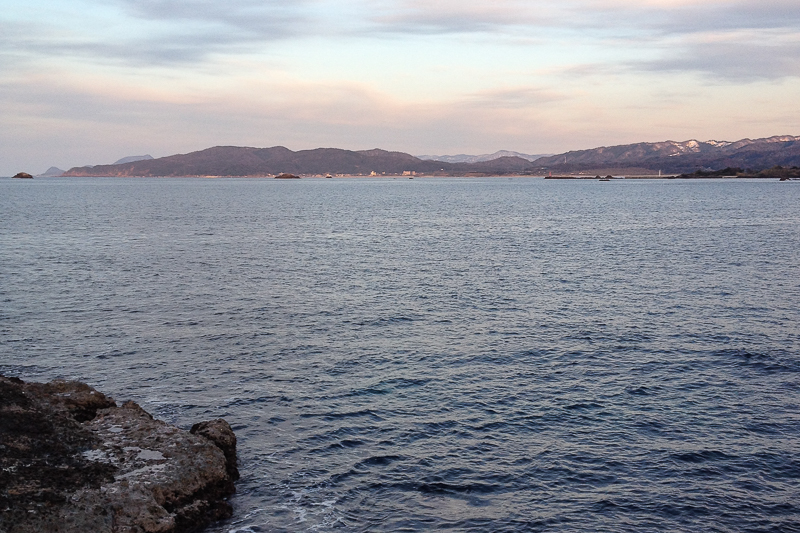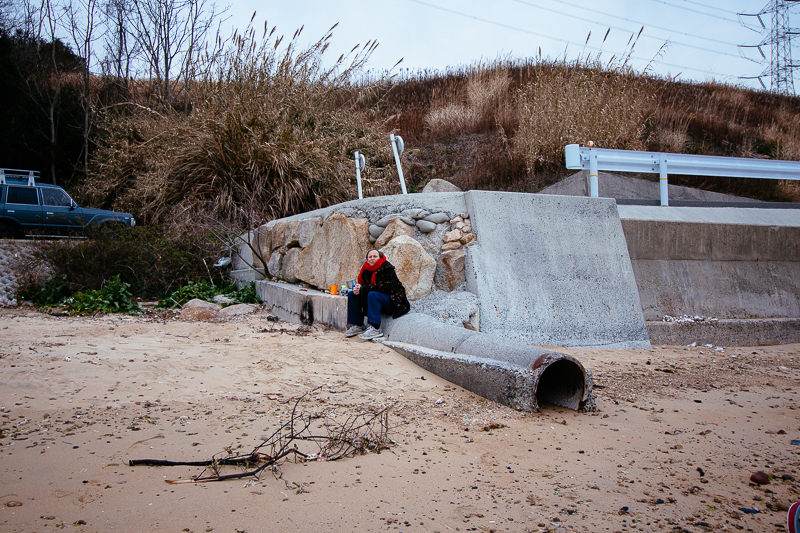Afterwards we set off for the south coast. We had decided at this point to forgo Hiroshima; it was just that bit too far and Expressways are pretty dull to say the least. With thoughts of dusk, we ended up in the Okayama area about half way between Hiroshima and Osaka. It was quite flat and the seaside ports were much more built up than their northern counterparts. Though eventually we did find a little track that led to a solitary farmhouse and land. We were literally metres from the sea and spent the evening gazing out across to a number of small islands watching the ferries shuttling between them.