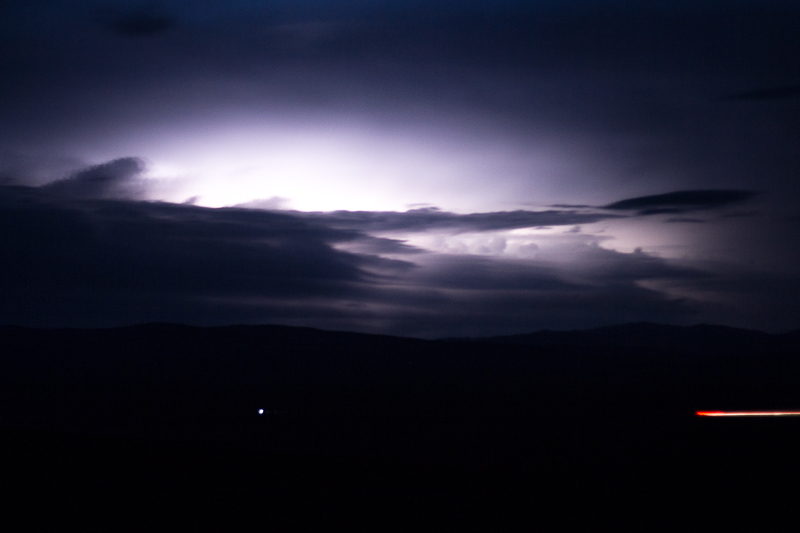 Well it turns out the ‘neck of lamb’ doesn’t have a lot of meat on it: there were bits of flesh; a lot of fat; strange yellow bits and sinew – oh and a lot of bone. We must have managed to carve off about 1/30 of the original piece. This we literally incinerated becoming ever more cautious of the meal ahead. And then the dark menacing clouds suddenly poked over the steppe and the thunder and lightning cracked and the rain drops fell violently. With seconds to spare we were in the seats of the car with a handful of burnt lamb’s neck on the dashboard for supper.