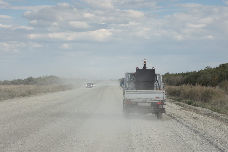 Driving through road works – the Chinese are currently building lots of roads through Kazakhstan to enable easy access by road to Europe.